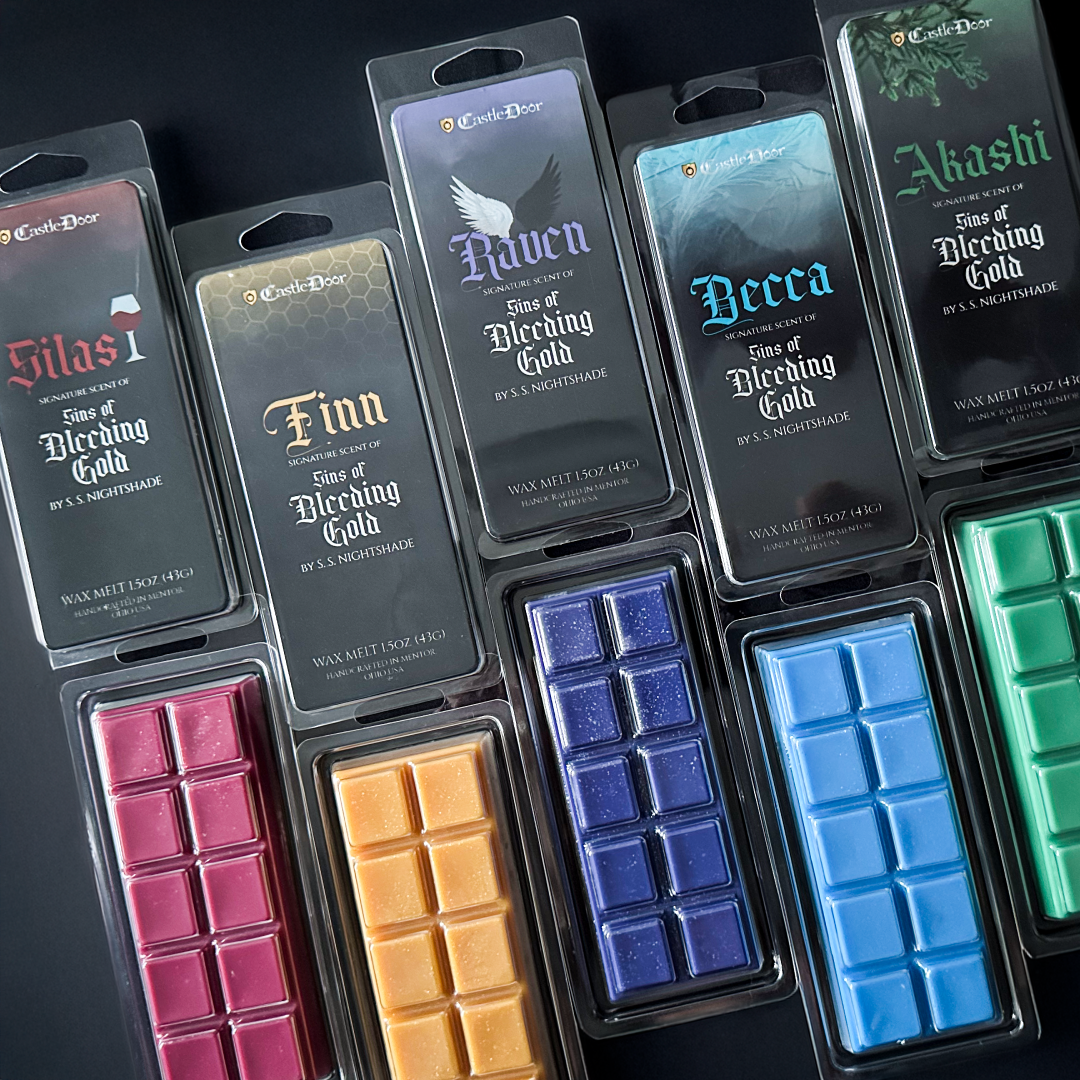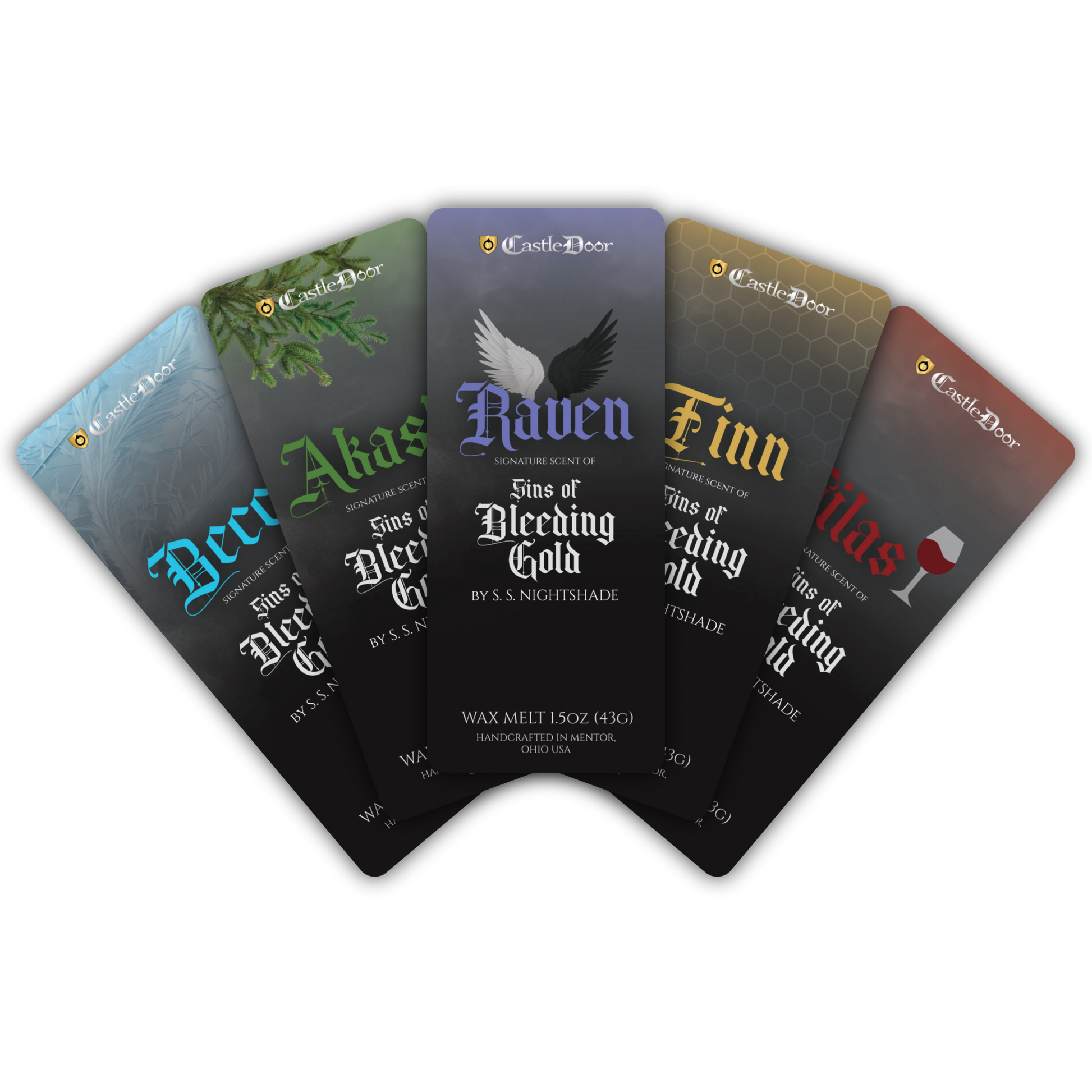 Choose your favorite character scent OR order all 5 scents and get a FREE signed copy of Sins of Bleeding Gold!