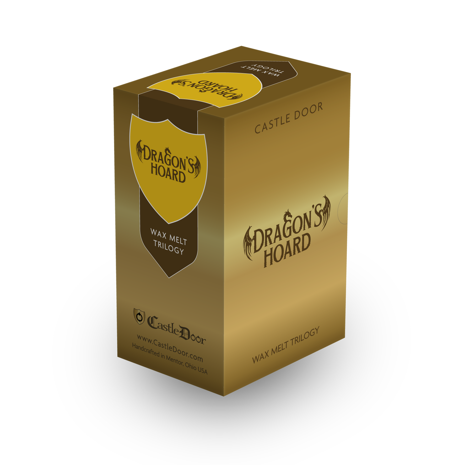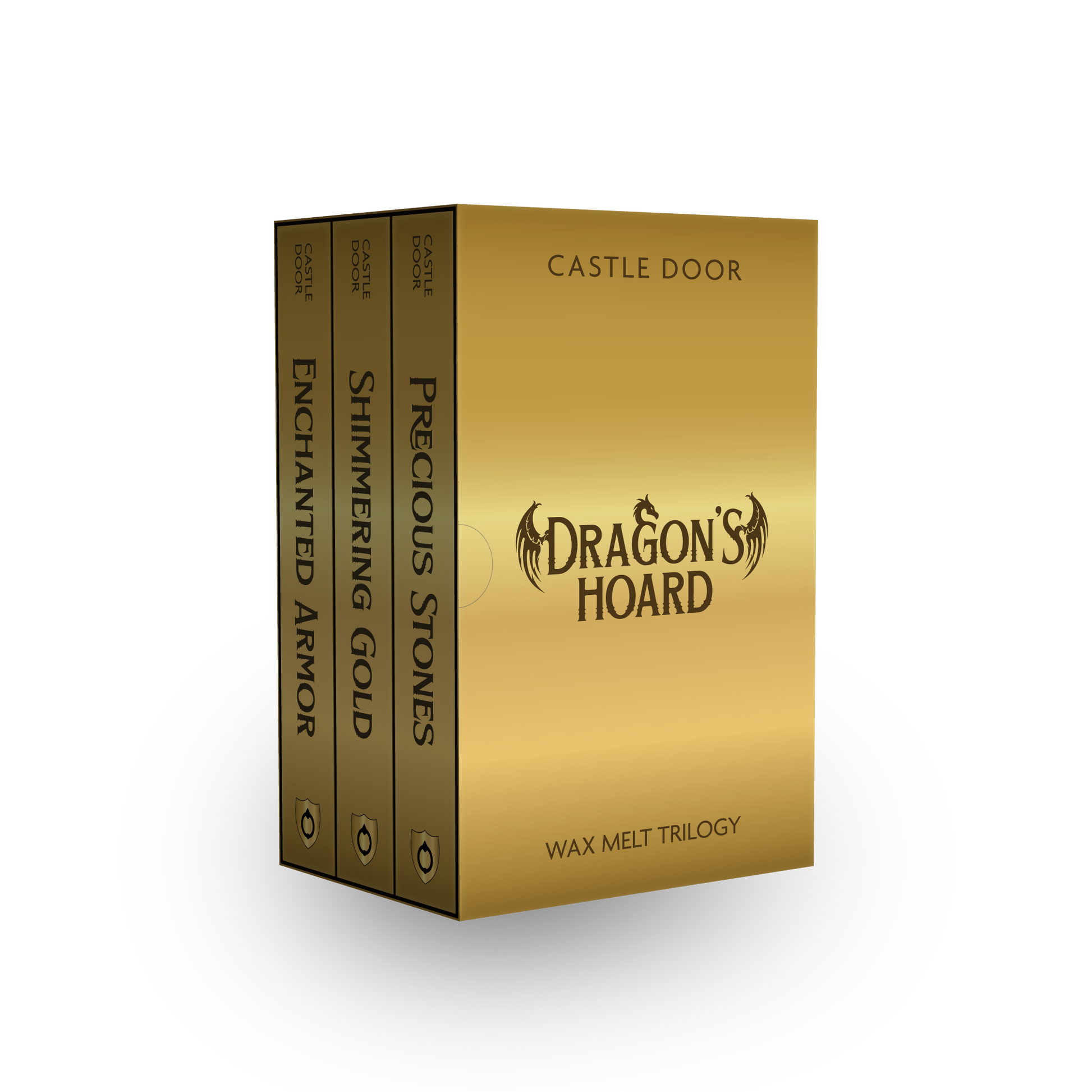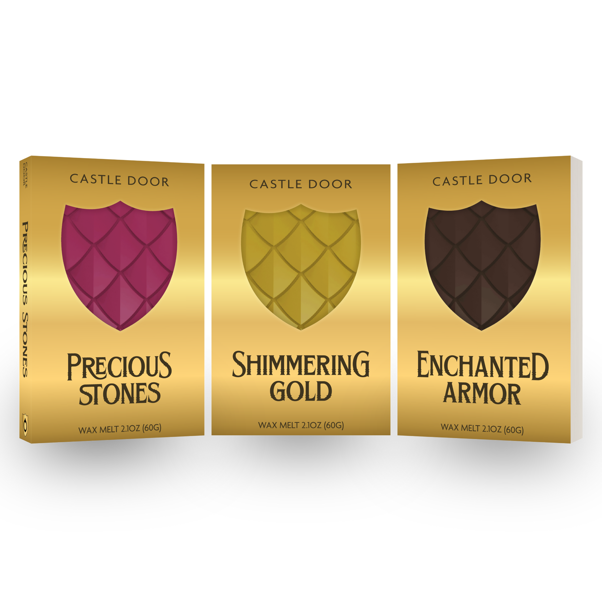 Dragon's Hoard is a collection of 3 full sized (2.1oz) dragon scale wax melt snap bars in a beautiful box set.