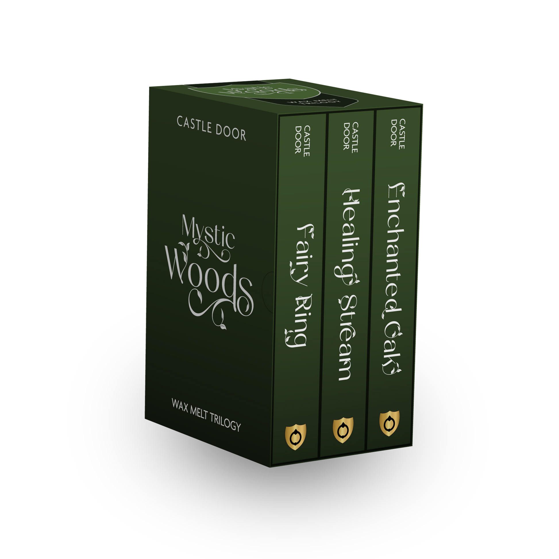Mystic Woods is a collection of 3 full sized (2.1oz) dragonscale wax melts in a collectible bookish box set.