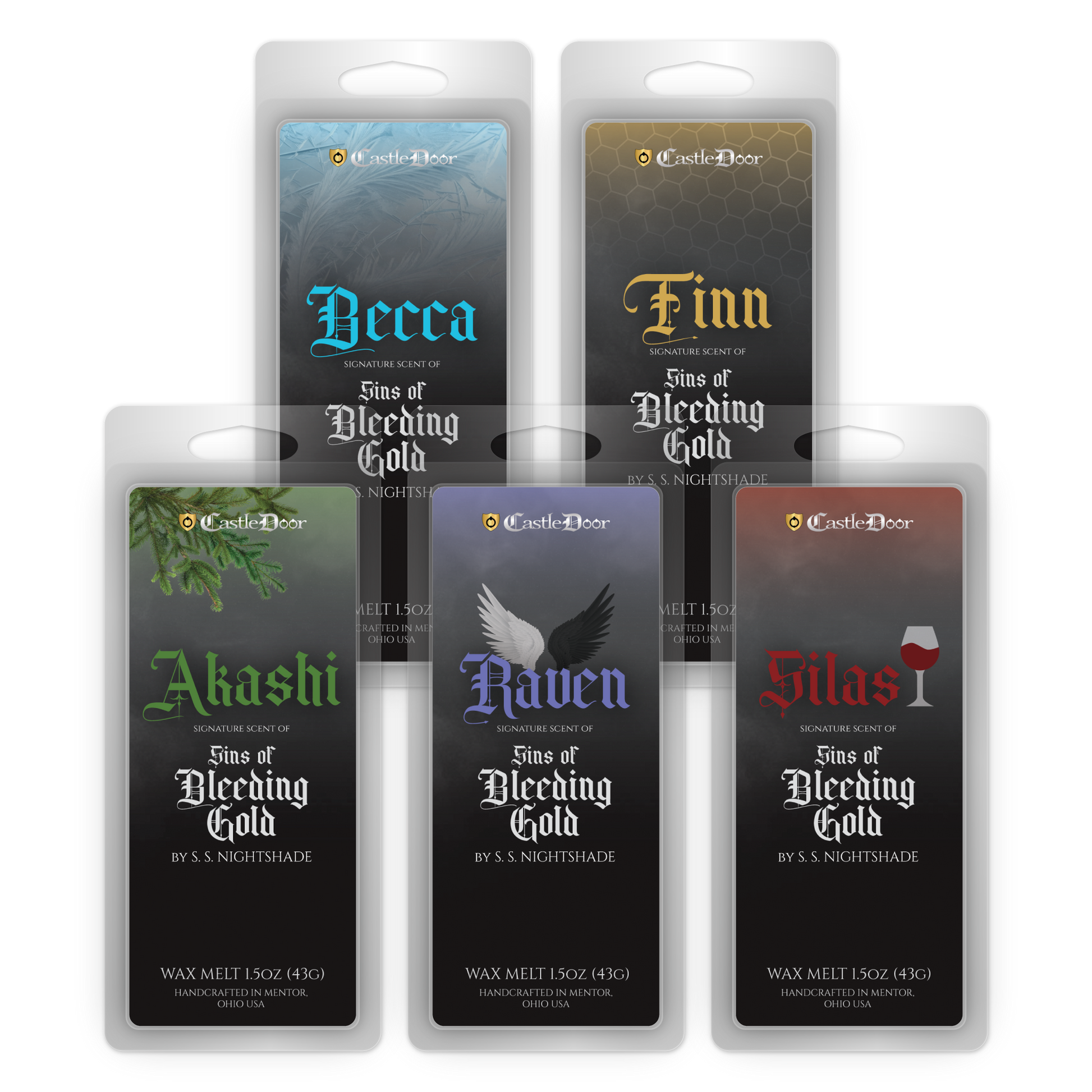 FREE signed copy of Sins of Bleeding Gold with purchase of this wax melt collection!